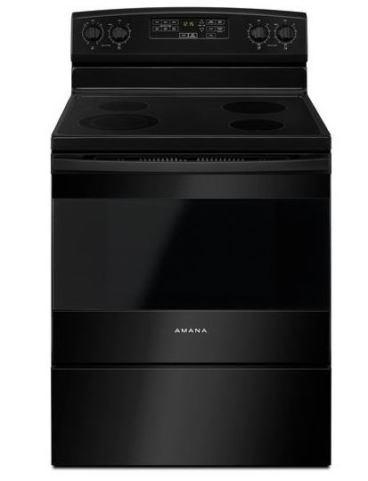 A sleek and efficient cooking solution, the Amana Self-Cleaning Smoothtop Electric Range - Black (30") [Model AER6603SFB] is designed to make everyday meals easier while adding modern style to your kitchen. Its spacious 30-inch design provides plenty of room for baking, roasting, and cooking multiple dishes at once, while the smoothtop surface offers a clean and contemporary look. With self-cleaning technology, this electric range takes the hassle out of oven maintenance, allowing you to spend less time scrubbing and more time enjoying meals.