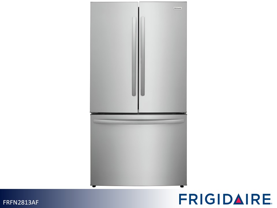 Sleek and spacious, the Frigidaire EvenTemp French Door Refrigerator - Stainless (28.8 Cu Ft) [Model FRFN2813AF] offers premium storage capacity and advanced cooling technology for busy households. Its modern French door design gives easy access to fresh foods while the bottom freezer keeps frozen items organized and within reach. The stainless steel finish resists fingerprints and smudges, maintaining a clean, polished look in your kitchen.