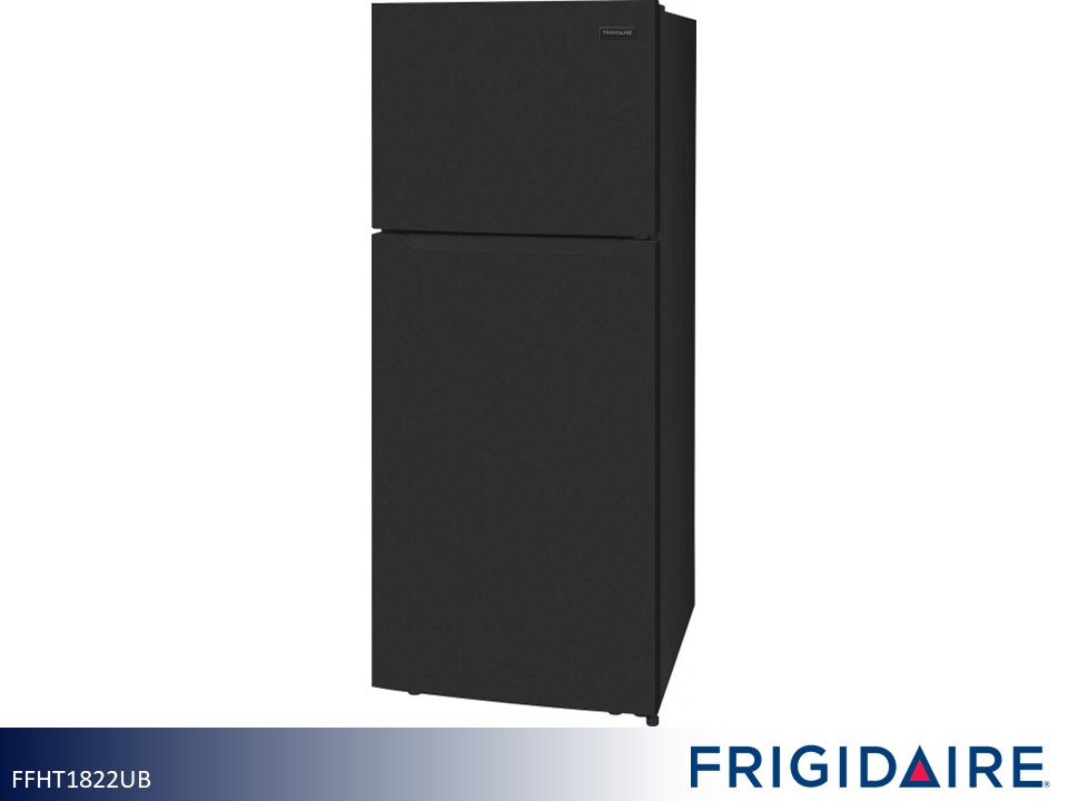 Reliable cooling with flexible storage for busy kitchens. The Frigidaire Refrigerator with Top Mount Freezer - Black (18 Cu Ft) [Model FFHT1822UB] offers family-friendly capacity with adjustable shelving, gallon-door storage, and bright LED lighting to keep everything easy to see and reach. Its classic top-freezer layout maximizes usable space, while spill-safe glass shelves and humidity-controlled crispers help keep produce fresh and messes contained.