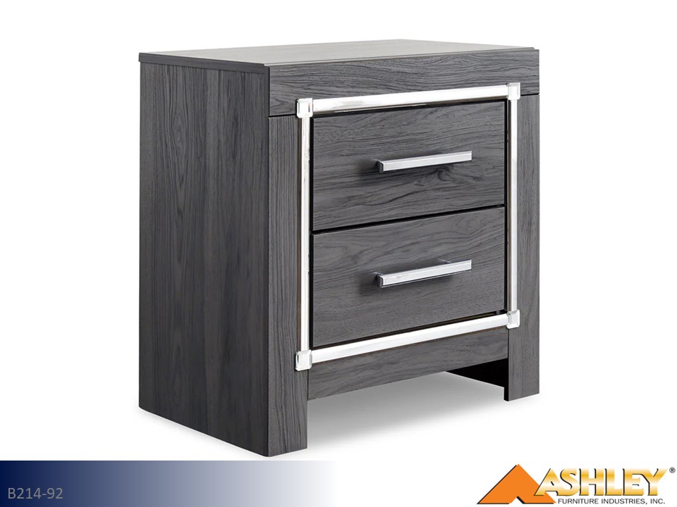 Sleek modern design combines with practical convenience in the Ashley Lodanna Nightstand - Gray [Model B214-92]. With its cool gray finish and clean, contemporary lines, this nightstand adds a touch of sophistication to any bedroom. The compact size makes it perfect for bedside essentials while its striking design coordinates seamlessly with other Lodanna collection pieces.