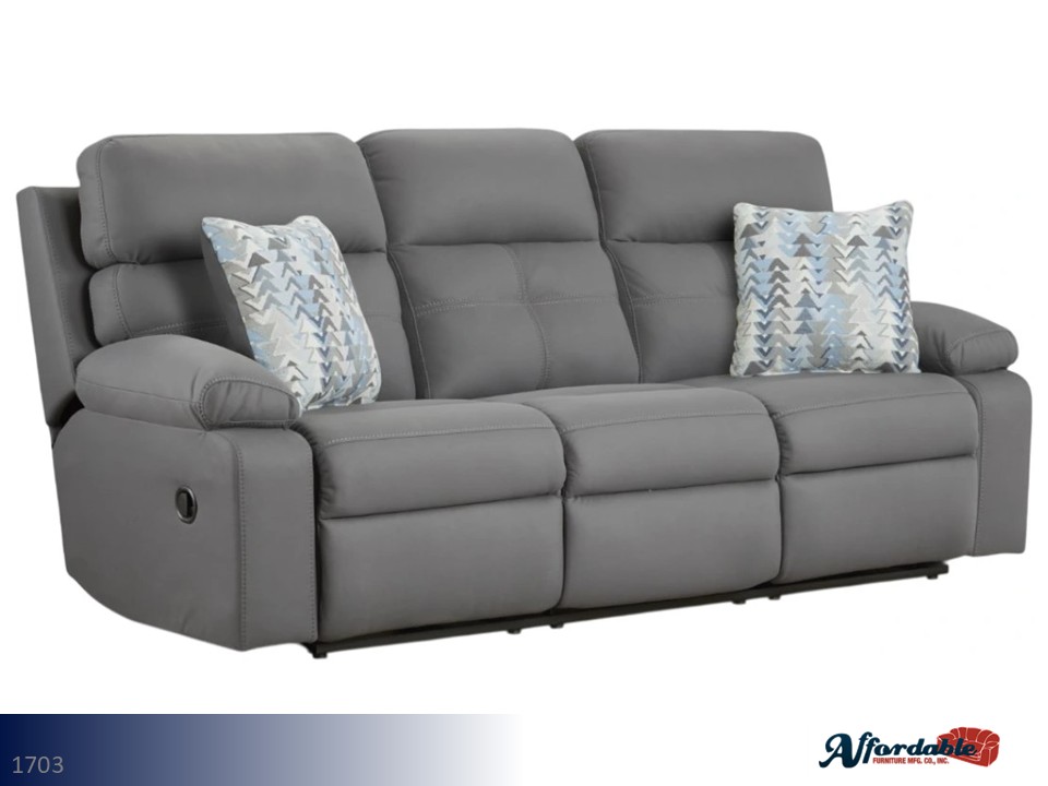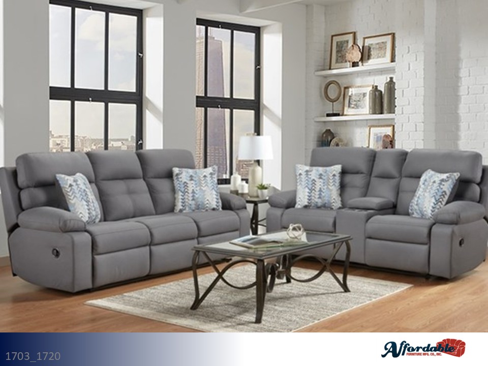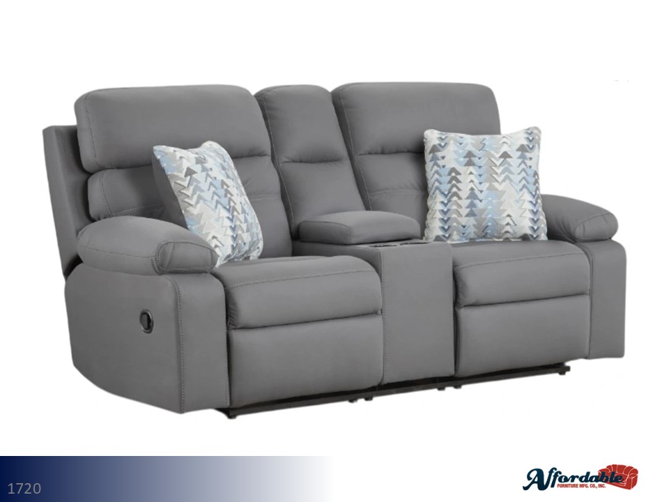 Cozy comfort designed for two. The Affordable Porschia Motion Loveseat - Asphalt [Model 1720] brings modern style and plush relaxation into your living space. Upholstered in durable asphalt-colored fabric, this motion loveseat offers smooth reclining functions, supportive cushioning, and a contemporary look that pairs perfectly with the matching motion sofa. Ideal for apartments, family rooms, or entertainment spaces, it provides the perfect balance of comfort and value.
